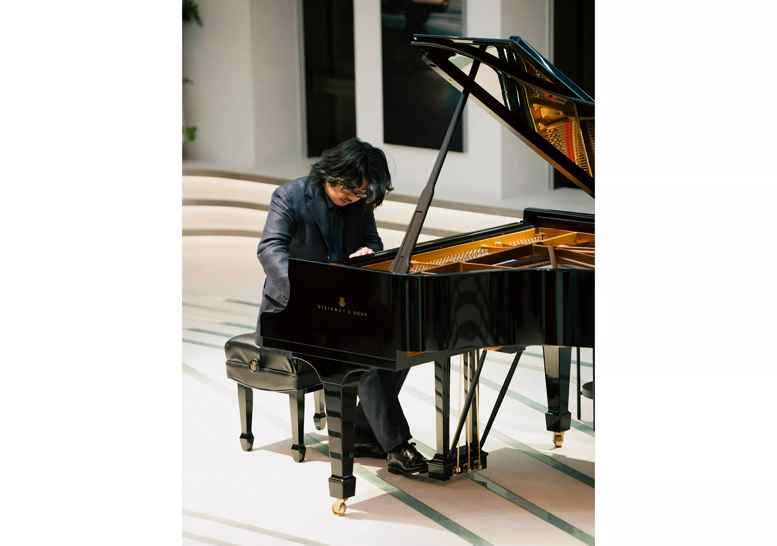 初手を飾るのは、ムソルグスキーの『展覧会の絵』。BMWの最新モデルが展示される『FREUDE by BMW』でのコンサート、ということから“展覧会”を着想し選んだというこの曲は、組曲全体で35分ほどあるものを15分ほどに凝縮したスペシャル・バージョンで披露されます。反田氏がピアノの前へと座り、厳かに演奏が始まりました。