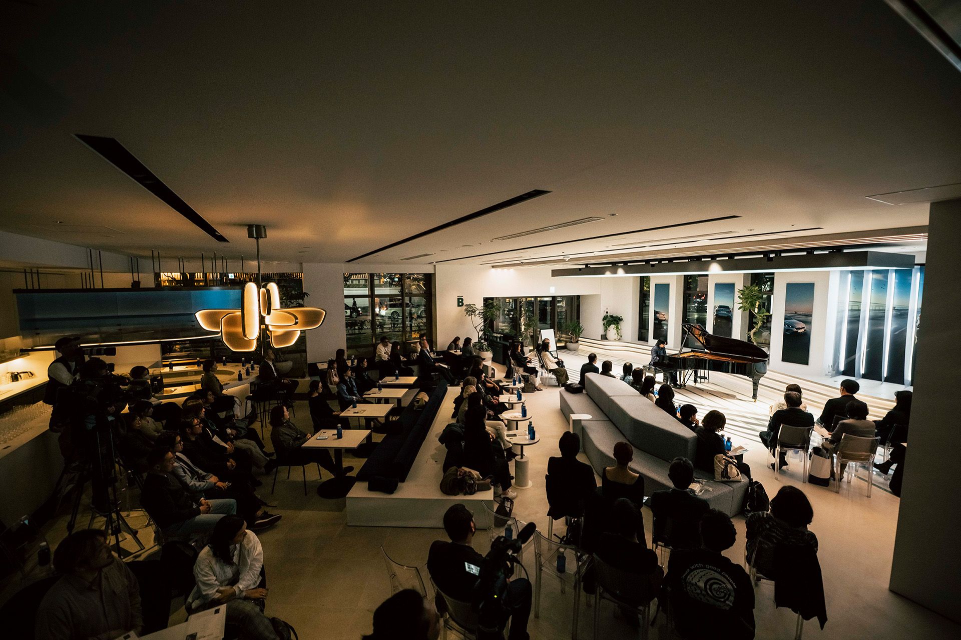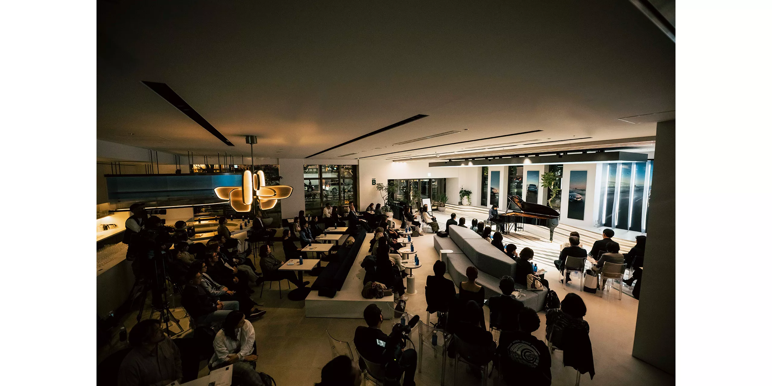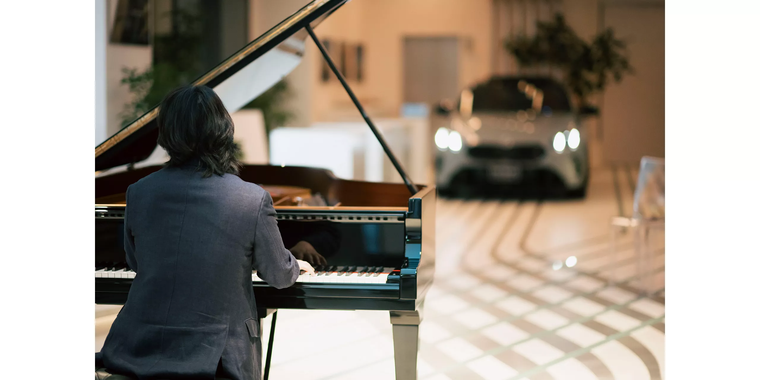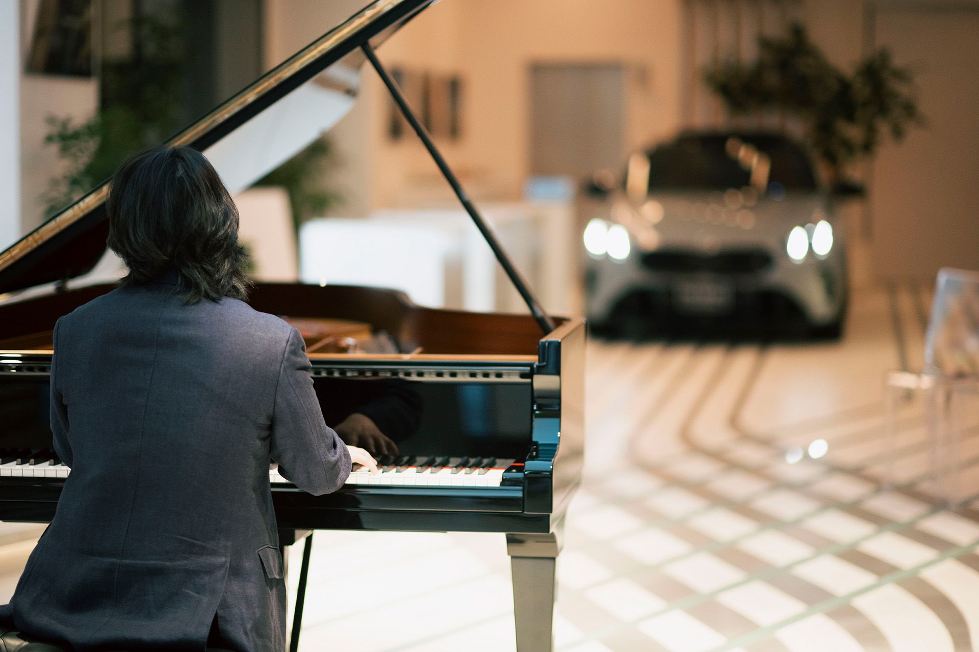 長くなり始めた陽も傾き、街に煌めきが灯りだす頃。東京・麻布台ヒルズの一角にある『FREUDE by BMW』は、いつもとは異なる静寂と熱気に包まれていました。普段BMWの最新モデルが展示されているスペースには、一台のグランド・ピアノ。そう、今宵はブランド・フレンドである世界的ピアニスト、反田恭平氏による特別なコンサートが行われるのです。