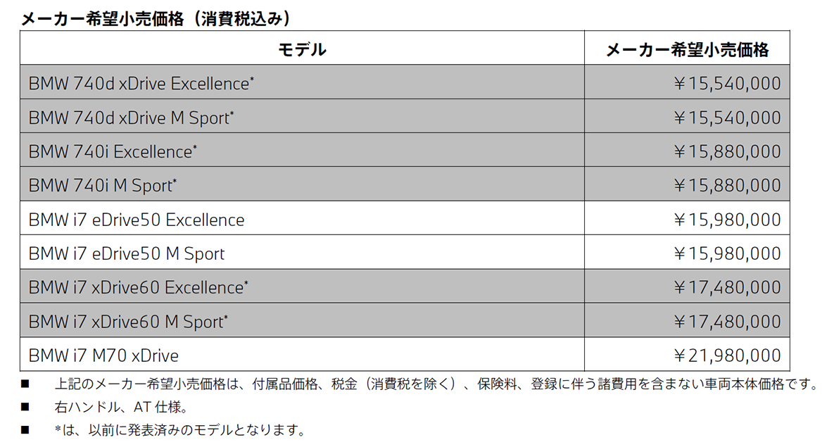 ビー・エム・ダブリュー株式会社(代表取締役社長: 長谷川正敏)は、圧倒的な存在感を放つ究極の最高峰ラグジュアリー・セダン「BMW 7シリーズ」のラインアップに、新たに2つの電気自動車モデルを追加し、全国のBMW正規ディーラーにおいて、本日より販売を開始する。納車は、本年第四四半期以降を予定している。